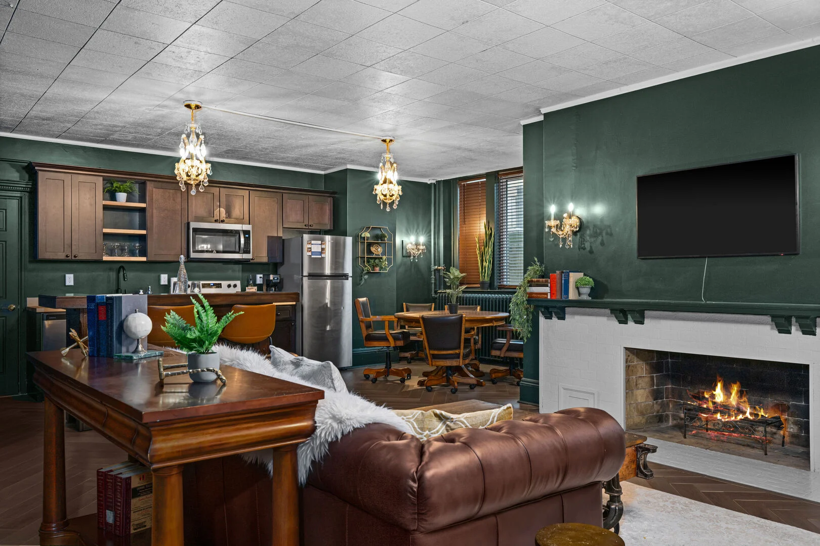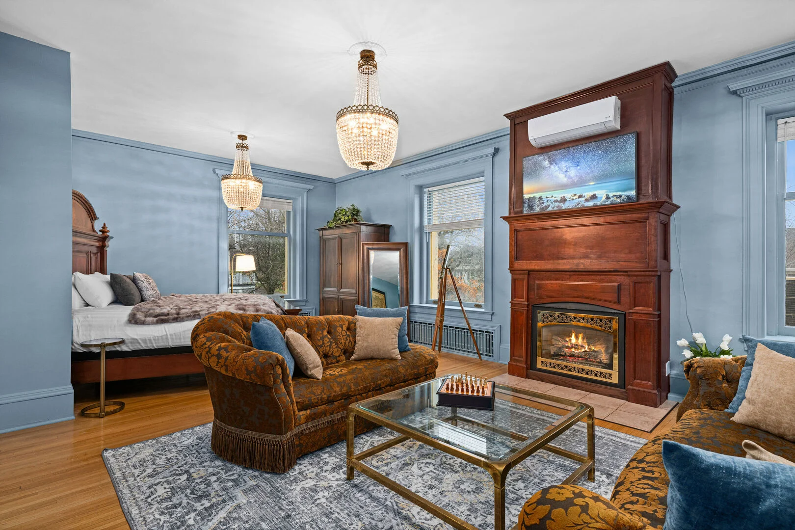Each room includes premium amenities to help you relax, refresh, and enjoy the unique charm of the mansion. Whether you’re soaking in a spa tub or winding down by the fire, comfort is always part of the stay.